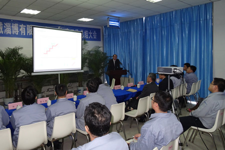 王正軍總經(jīng)理首先對2014年度工作做了總結(jié):2014年是一個(gè)豐收年,各項(xiàng)指標(biāo)創(chuàng)公司歷史新高。訂貨同比增長2%, 營業(yè)收入同比增長9.2%,應(yīng)收賬款大幅下降。更可喜的是臨界利潤率增長3.8個(gè)百分點(diǎn)。公司連續(xù)二年實(shí)現(xiàn)盈利,完成了荏原制作所的總體目標(biāo) 。